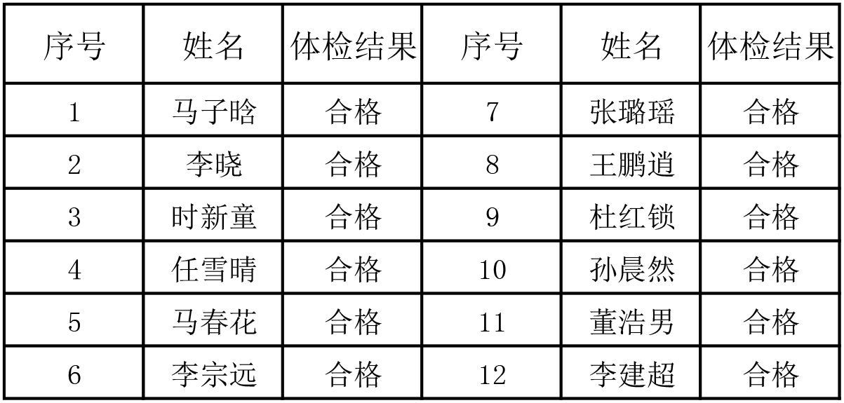 以下為體檢合格人員名單: