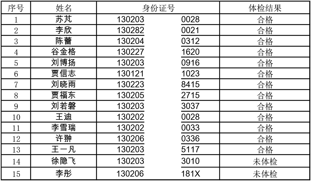 以下體檢合格考生,確定為唐山市自來水公司2021年公開招聘工作人員擬聘用人選,在唐山意誠勞務(wù)服務(wù)有限公司網(wǎng)站“www.tempreal.cn”進(jìn)行公示,公示期為7個(gè)工作日。
