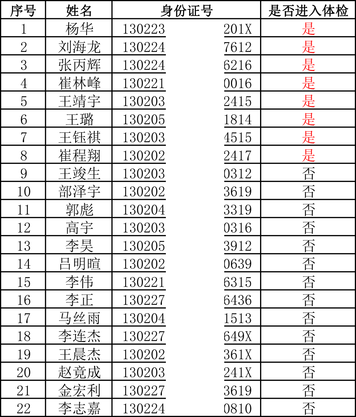 進入體檢環節考生,體檢費用考生自理,體檢環節相關體檢指標嚴格管控,一票否決。