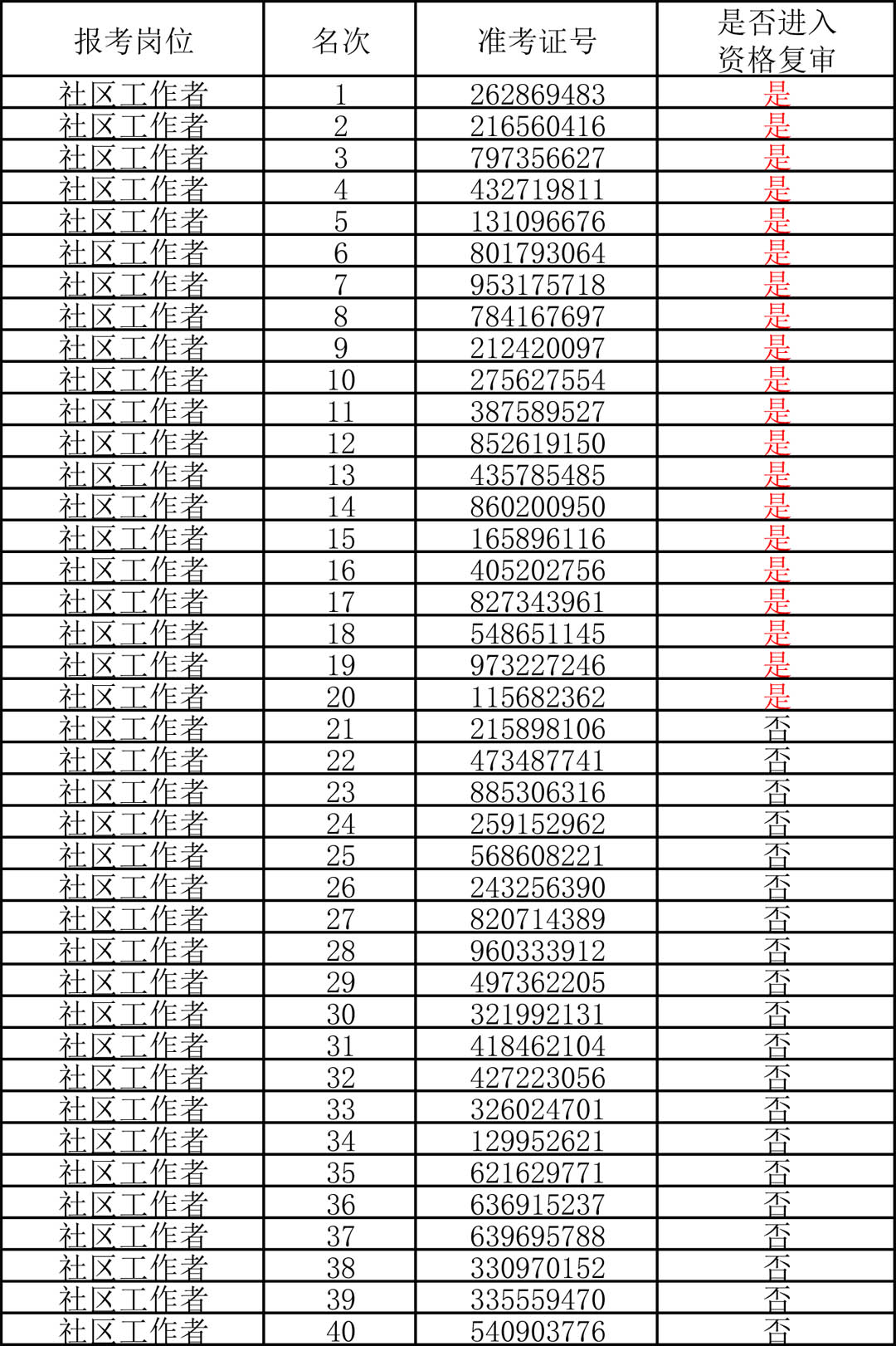 以下為社區工作者筆試成績進入最低控制分數線考生列表: