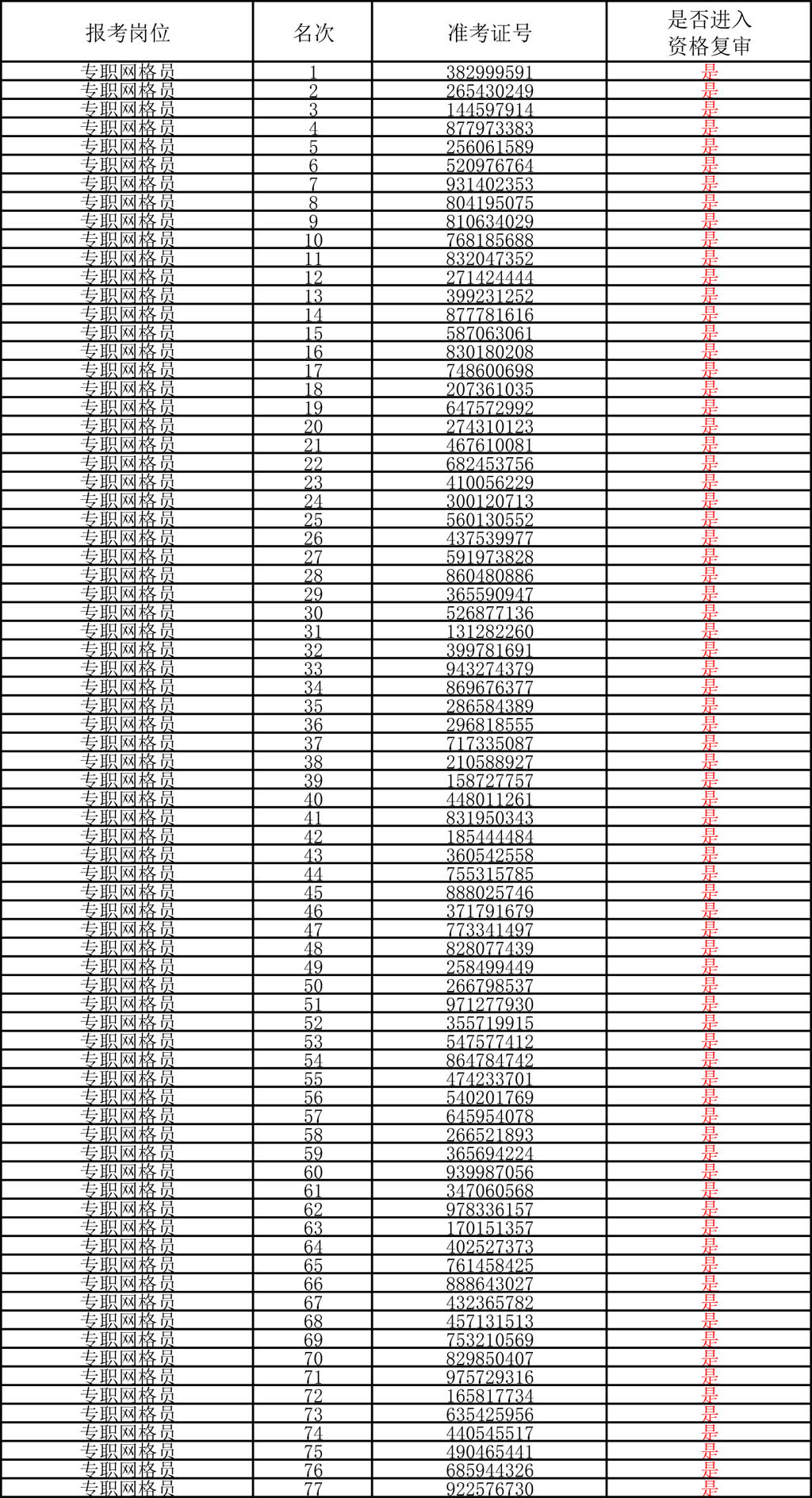 以下為專職社區(qū)網(wǎng)格員筆試成績進(jìn)入最低控制分?jǐn)?shù)線考生列表: