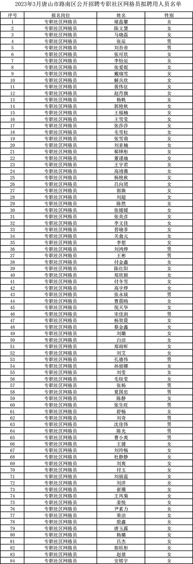 附:《?2023年3月唐山市路南區公開招聘專職社區網格員擬聘用人員名單》