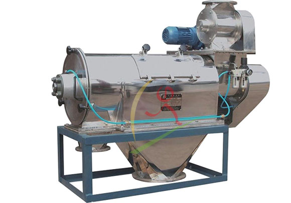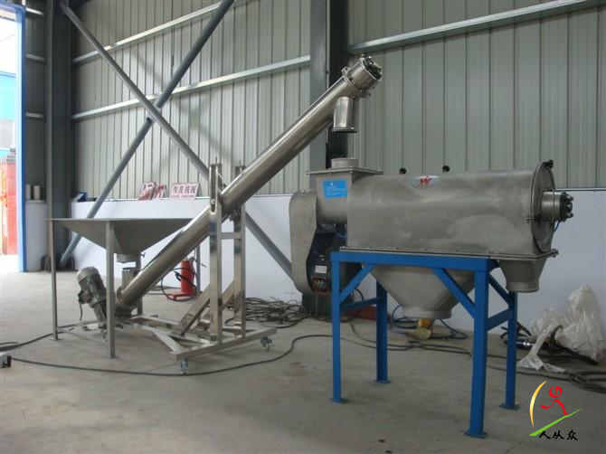 臥式氣流篩擯棄重力勢(shì)能作用原理,采用空氣作載體,利用動(dòng)能做功的原理來工作。當(dāng)物料通過螺旋輸送系統(tǒng)后,和氣流混合、進(jìn)入篩機(jī)風(fēng)輪中間;通過風(fēng)輪葉片施加離心力,向桶型篩網(wǎng)噴射過網(wǎng)。超徑物料不能過網(wǎng),由自動(dòng)排渣口排出,從而達(dá)到快速篩分的目的。