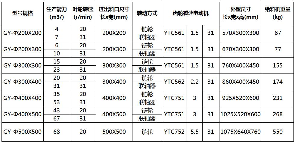 GY剛性葉輪給料機(jī)技術(shù)參數(shù):咨詢熱線:18638319063(微信同號)